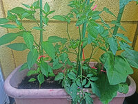 5 29 ししとう 実が着いたよ W なす 誘引 トマト 誘引 わき芽 トマトトーン ししとう ピーマン 追肥 プランター プランター菜園 プランター栽培 Plants